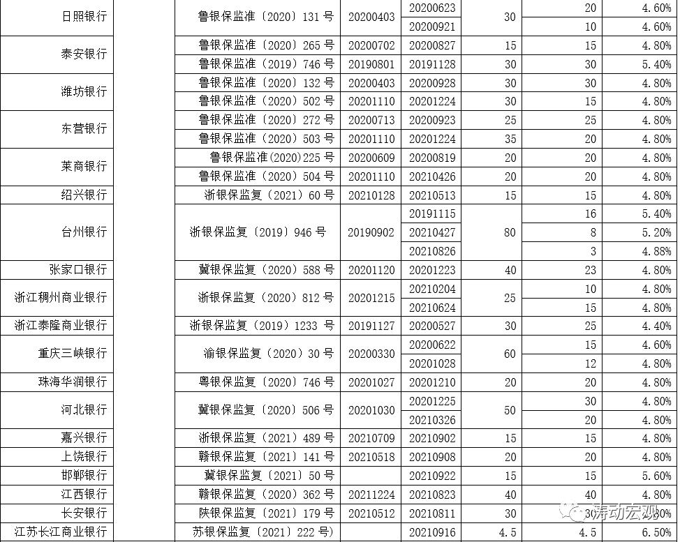 (2)80家機構的合計獲批發行規模為18520億元,進出口銀行600億元、全部國有大行8915億元、12家股份行6350億元、42家城商行2014.50億元、7家農商行295億元以及網商銀行50億元、3家金融AMC300億元。
