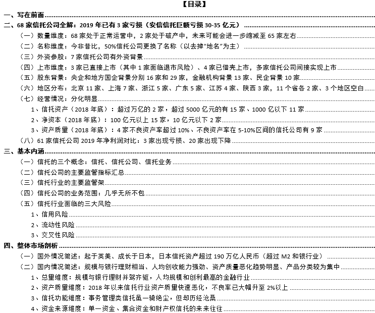 二、68家信托公司全解:2019年已有3家虧損(安信信托巨額虧損30-35億元)
