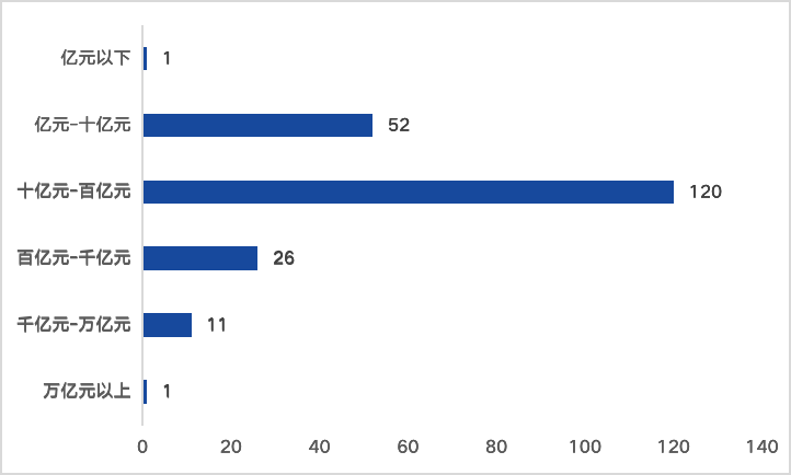 (三)近57%公司營收規模處在十億元到百億元之間