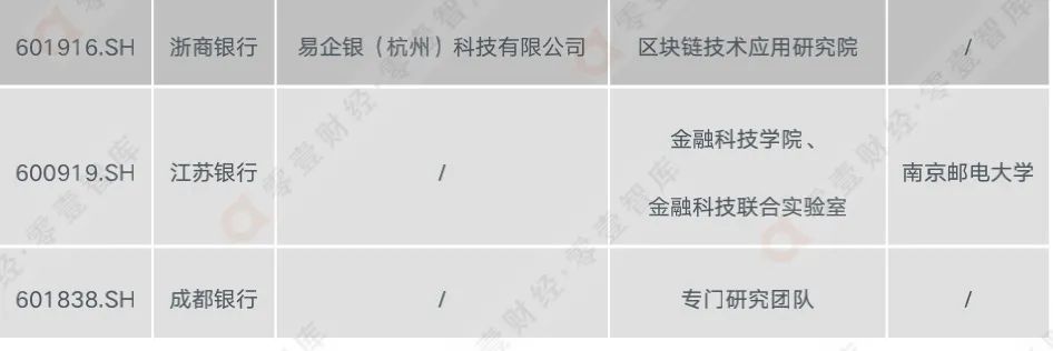 從211家區塊鏈概念股中銀行的區塊鏈布局來看,在技術研發上,銀行業區塊鏈技術來源以自建團隊和外部合作等方式為主。具體來看,一方面,銀行通過組建金融科技子公司、設立專門研究部門或者實驗室負責區塊鏈技術的研究,招聘區塊鏈專業人才;另一方面,加強跟獨立的第三方區塊鏈技術提供商合作,根據自身業務情況,制定重點應用方向,并推進項目落地,解決業務中遇到的實際問題。