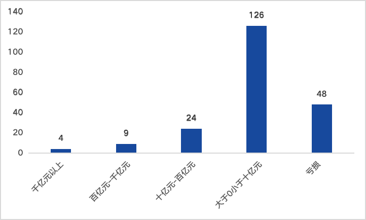(四)超60%公司凈利潤低于10億元,48家公司處于虧損狀態