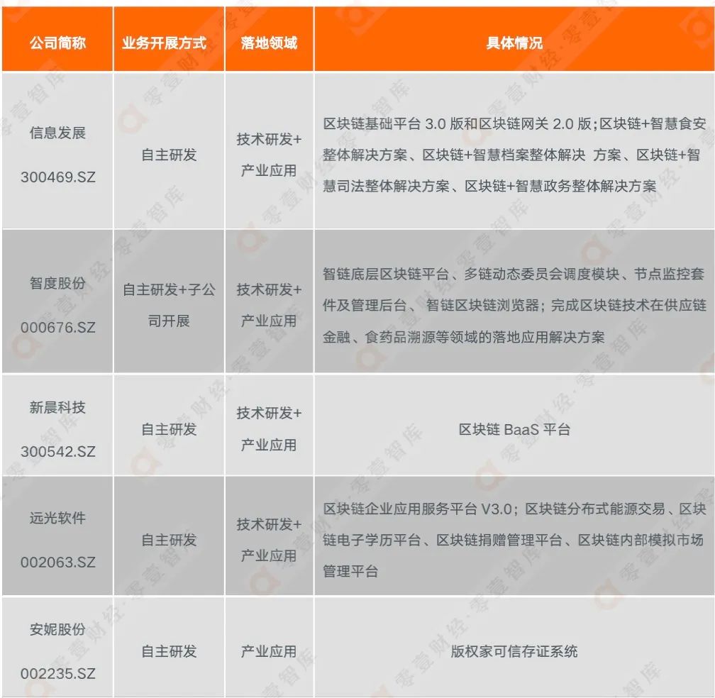 從10家公司的財報信息看,這些公司的區塊鏈業務開展方式以自主研發為主,同時還包括合作研發及通過子公司開展等方式;