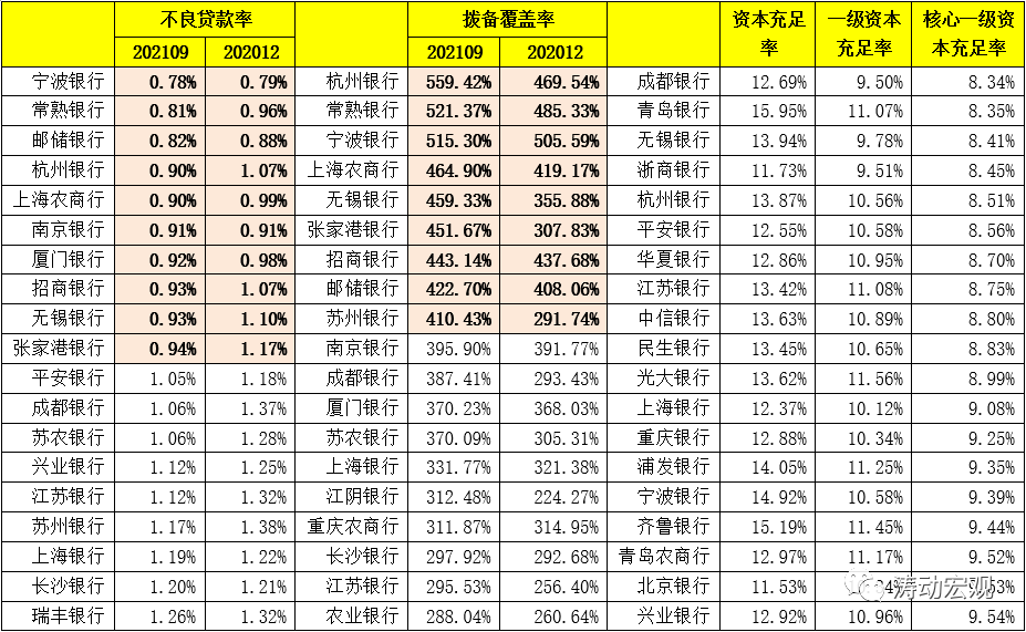 (一)10家銀行不良貸款率低于1%、9家銀行撥備覆蓋率高于400%