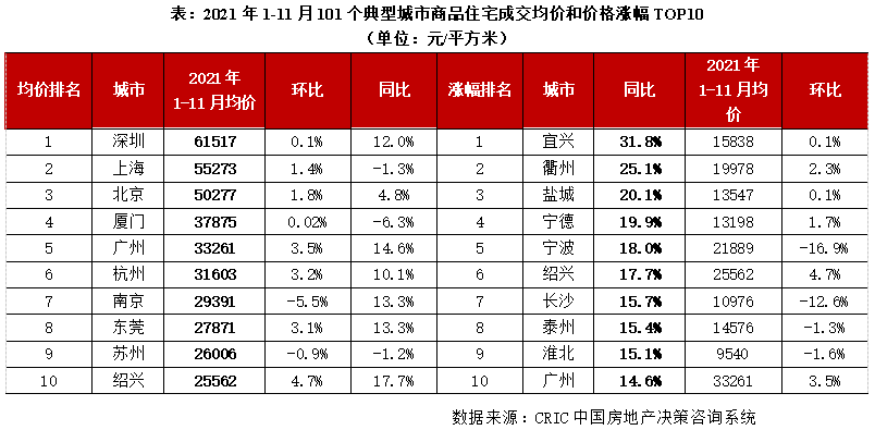附表3:2021年1-11月101個典型城市新建商品住宅成交均價情況(單位:元/平方米)(略)