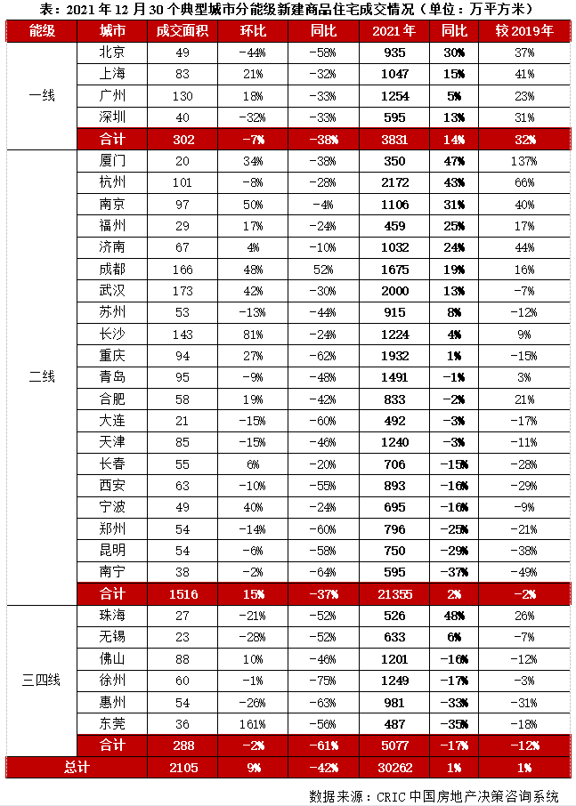 4、12月成交:二線翹尾環比增15%,一線和三四線同環比齊跌