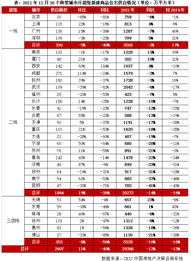 通過估算30個重點城市12月供應量,預計全年商品住宅供應面積同比降幅較前11月進一步擴大。
