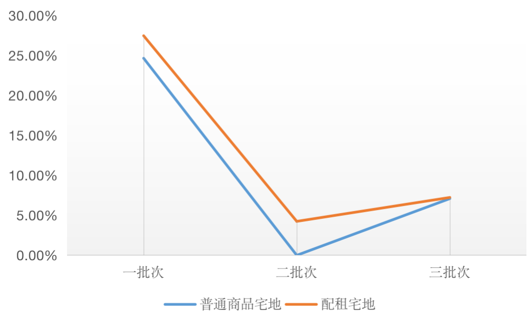 圖:杭州三批次成交配租宅地和普通宅地平均溢價(jià)率對(duì)比