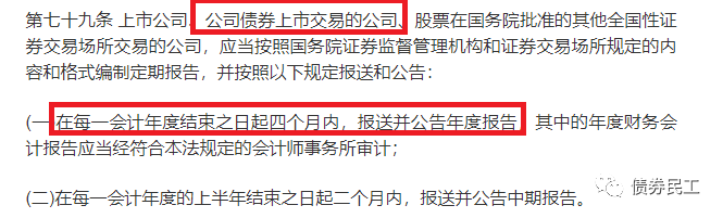 根據(jù)新《證券法》第七十九的明確要求,債券發(fā)行人需要在4月30日之前披露年報報。除非有明確的延期理由和延期事項,年度報告披露是不能延期的。