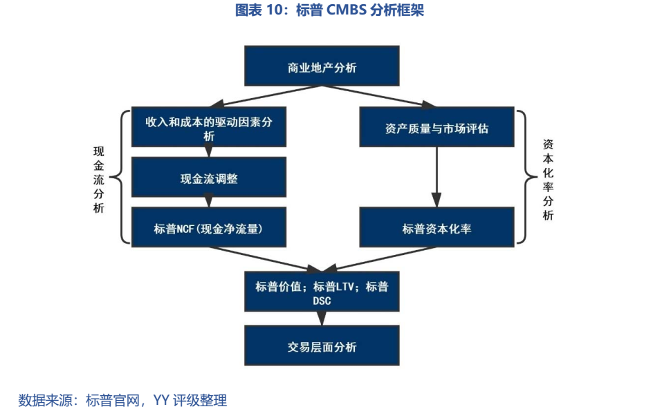 標普的全球CMBS評級較為全面,核心是推導出長期可持續現金流(標普NCF)的潛力和價值。