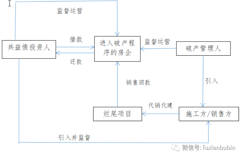 共益?zhèn)耐顿Y人可在滿足一定條件下,將相應(yīng)的款項(xiàng)借給破產(chǎn)企業(yè),具體交易結(jié)構(gòu)如下: