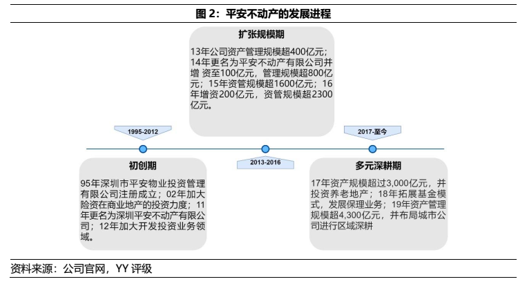 得益于平安集團業務的擴張,平安不動產的管理規模也相應倍增,自13年的400億元上升至19年末的4,300億元,并布局了保理業務、物流地產和養老地產等多元業態。