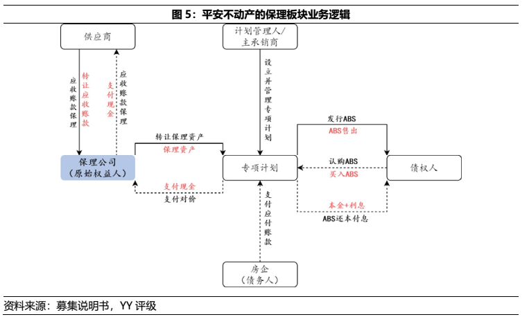 目前平安不動產的保理業務主要由深圳市前海平裕商業保理有限公司開展。現階段商業保理公司主要依賴其股東進行融資,而平安不動產背靠中國平安長久期、低成本的銀彈支持之下,則無后顧之憂,僅需聚焦在結構化分層時的差額支付承諾風險。19年末、20年中,平安不動產的應收賬款融資分別為7.76億元和39.32億元,即保理業務增長所致,也反映了相應的風險。