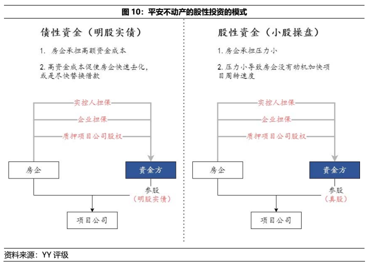 而導致項目周轉率低的主因,除了底層投資標的和項目合作方不靠譜外,大概率是股性資金觸發了合作方人性的弱點“低資金壓力導致項目去化動機較小”。(若為股+債權模式,平安5.90%的利息成本對于地產開發商仍較低廉)