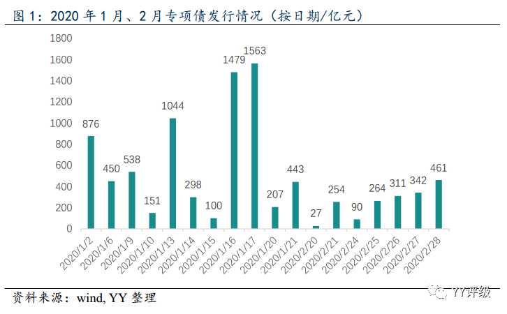 2月份專項債發行還算剎住了車,到2月下旬才拉開序幕,且日均發行規模上較1月份也明顯降低,全月共發行2350億元。1-2月共使用下達額度的73.6%,平均發行期限14.5年,平均發行利率3.46%。