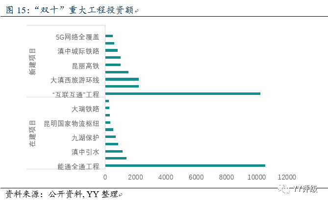 在2月23日云南省新冠肺炎疫情防控作業新聞發布會上,多個重磅音訊傳來:云南省在施行“四個一百”要點項目和“補短板、增動力”省級要點前期項目方案的基礎上,提出施行基礎設備“雙十”重大工程,構建快速、高效、智能、安全、綠色的現代基礎設備網絡。此次“雙十”工程總出資額3.6萬億元,其中在建項目1.6萬億元,新建項目2萬億元。其中“互聯互通”工程和“能通全通”兩大項目的投資額均超過1萬億元。