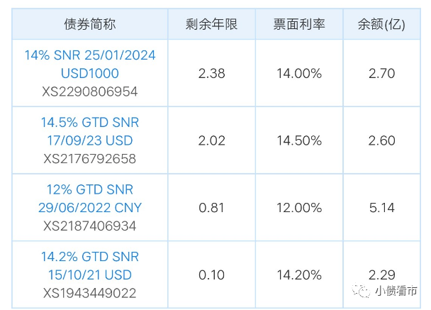《小債看市》統計,目前鑫苑置業存續4只美元債,存續規模12.73億美元,其中有兩只規模合計7.43億美元債將于一年內到期,其面臨集中兌付壓力較大。