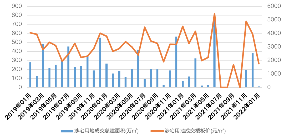 圖:2019年1月至2021年12月鄭州商品住宅月度供求量價