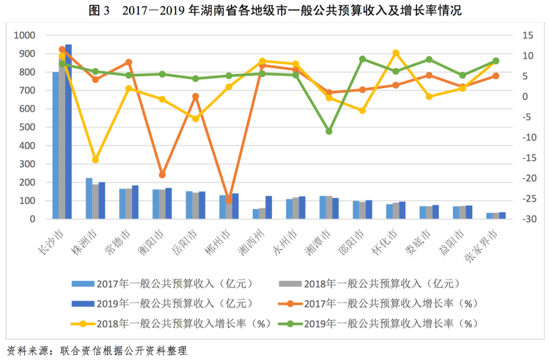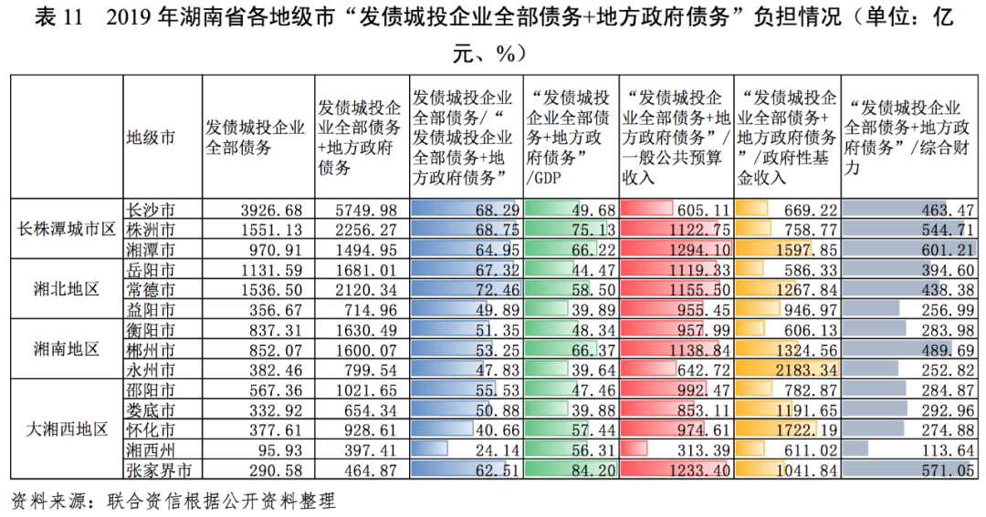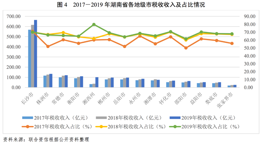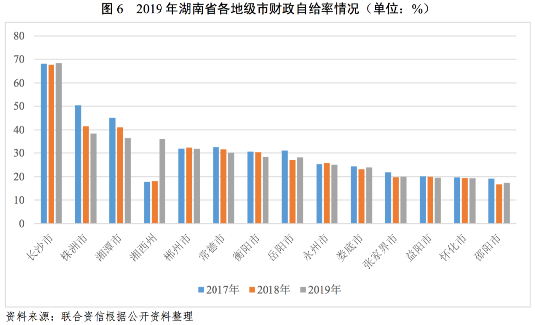 3.湖南省各地級市財政收入對發債城投企業債務的支持保障能力