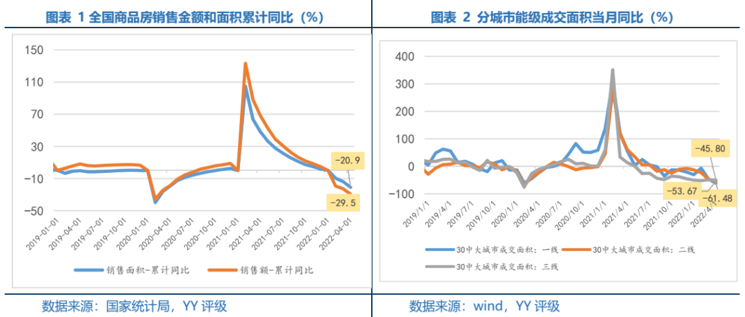 1.銷售端:1-4月仍在大幅下滑,多地疫情管控加劇去化問題