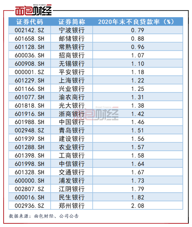 在當(dāng)前已經(jīng)發(fā)布年報的城商行中,上海銀行不良率位居第二低,明顯低于國有行和大部分股份制商業(yè)銀行。