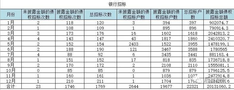 特別需要注意的是:由于銀行債權轉讓招標經常是直接發投標邀請至各持牌AMC,故公開數據只能顯示部分銀行債權招標情況,并不完整。實際招標額與成交率不應當依本白皮書數據計算,本白皮書也僅以公開的處置公告數據作為分析的基礎,并且不做招標和出讓情況的對比。