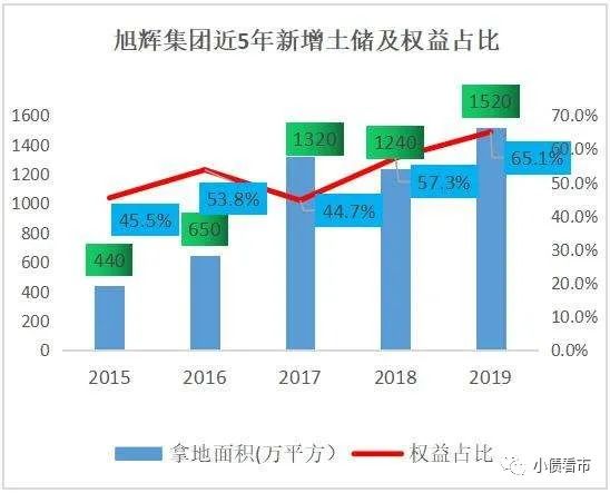 2017和2018年,旭輝控股集團分別耗資452億和411億元,拿下78個和93個土地項目權益,新增土地面積1320萬平方米和1240萬平方米。