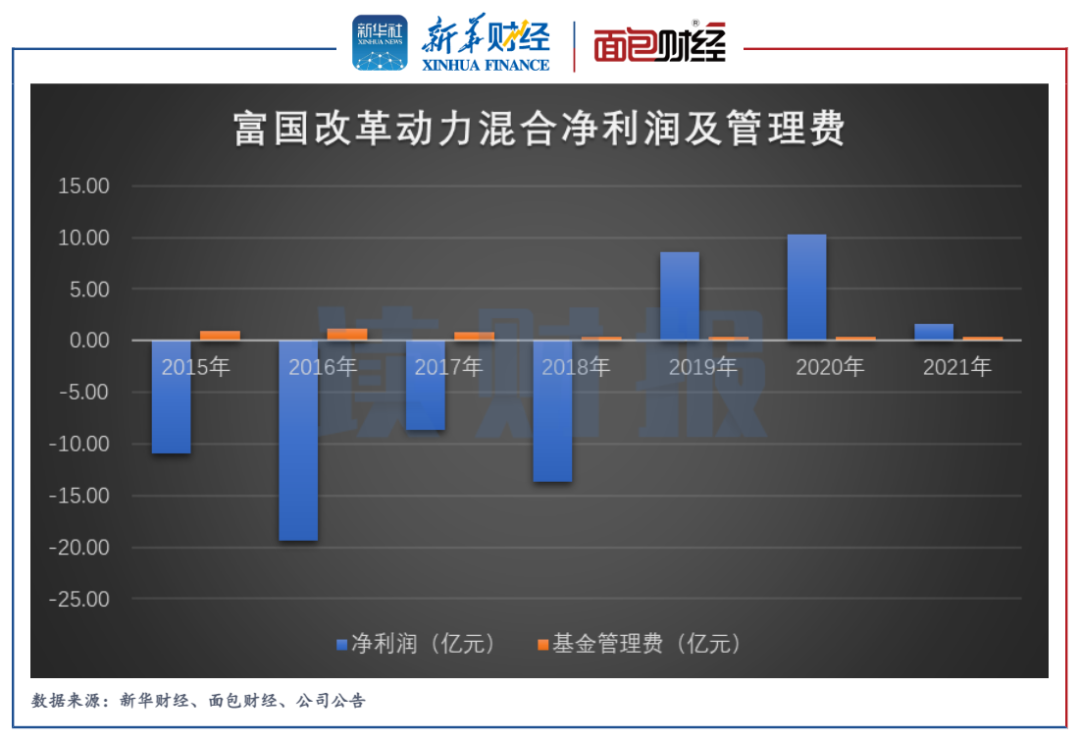 2015年基金成立以來至2021年末,富國改革動力混合累計產(chǎn)生凈虧損超過30億元,但累計收到管理費(fèi)收入超過4.5億元。
