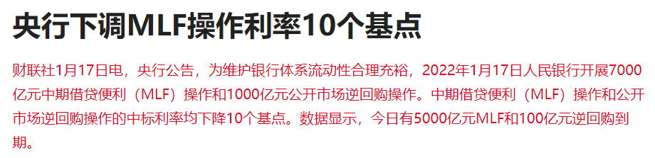 早上,中國央行宣布同時降低MLF與逆回購利率,降低幅度為10個基點。