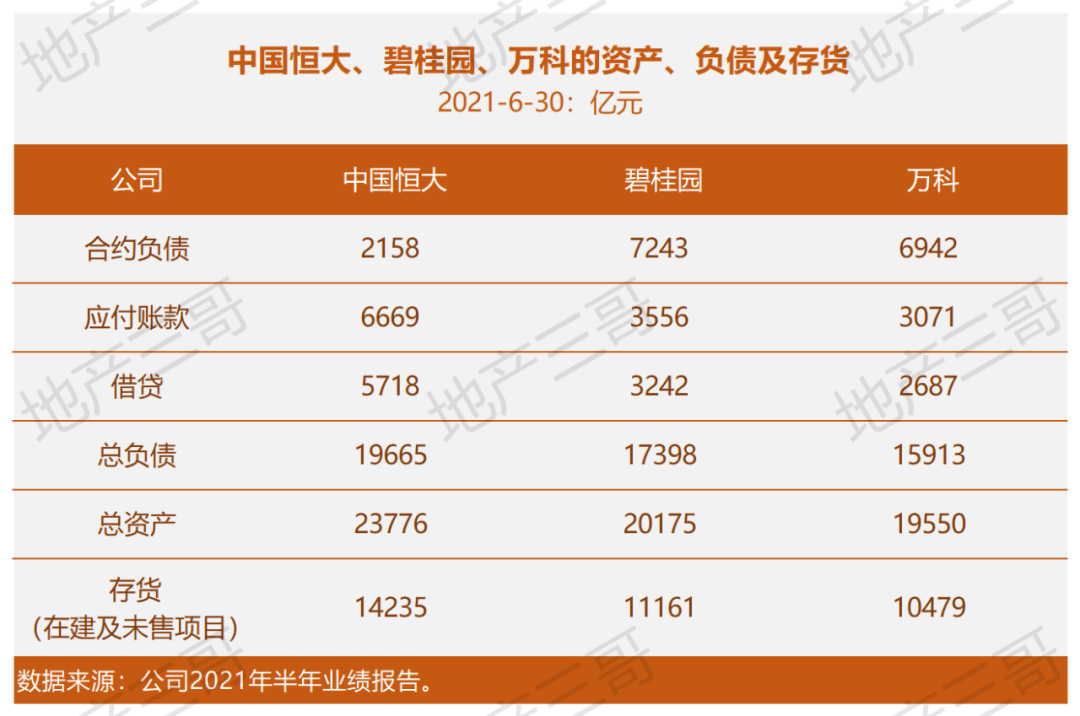 所不同的是:恒大的1.42萬億存貨中只有2158億元變成了實打實的預售現金流,計入合約負債。