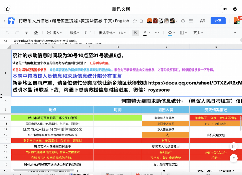 在當地斷電、通訊不暢、救援信息難以迅速傳遞的情況下,一個名為“救援互助信息登記模版”的騰訊文檔在網上刷屏。這個文檔由上海一所高校研究生創建,短短一天多時間,文檔登記了超過1000條求助信息,包含姓名、電話、所處地點、當前情況等信息,訪問量達250多萬次,當地救援部門根據文檔信息,開展了快速救援。