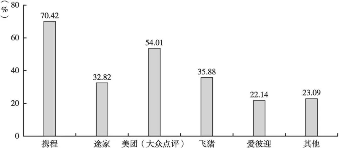 其中,70.42%的民宿主選擇了攜程,32.82%選擇了途家,美團54.01%,飛豬35.88%,愛彼迎僅22.14%。