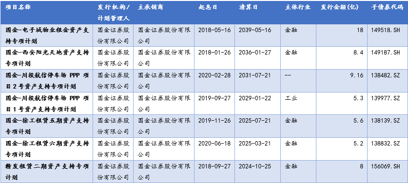 由國(guó)金證券作為管理人發(fā)行的企業(yè)ABS現(xiàn)存續(xù)的共有33單