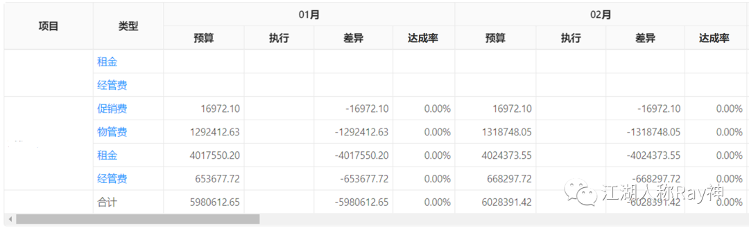 一定時期的某項指標的實際完成額相比于預算目標額的百分比,即:預算達成率=實際完成額 / 預算目標額。由于預算一般按年進行考核,因此預算達成率有月度達成率和累計達成率的概念,累計預算達成率=年累計實際完成額 / 年度預算目標額。此外,運營過程中,進行預算達成率評價的指標一般包括各項收入和費用,如:租金預算達成率、費用預算使用率等,也有應用于出租面積、商戶銷售額、客流等業務指標上。
