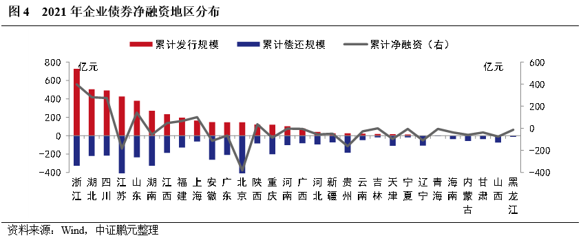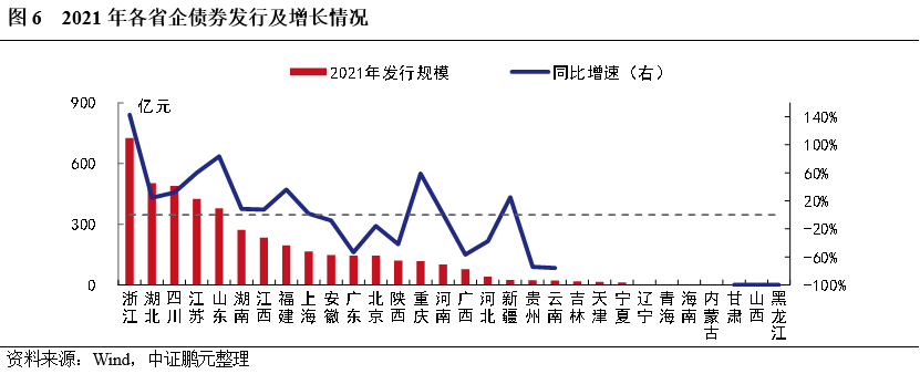 1. 企業(yè)債發(fā)行集中度較高,其中,浙江累計(jì)發(fā)行規(guī)模和漲幅最大