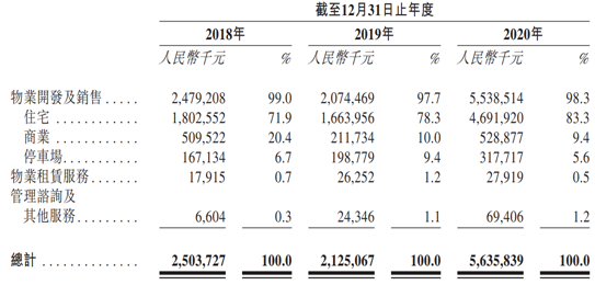 目前,物業(yè)開發(fā)及銷售仍是中億基業(yè)的主營(yíng)業(yè)務(wù),占比基本維持在啊99%左右,其中住宅物業(yè)又是大頭,2018-2020年分別占其營(yíng)收的71.9%、78.3%、83.3%,有越來越集中化的趨勢(shì)。