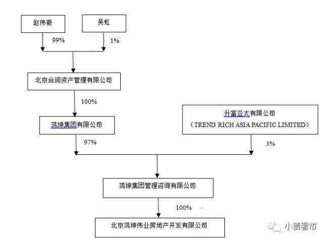從股權結構上來看,鴻坤地產的控股股東為鴻坤管理咨詢,持股比例100%,公司實控人為自然人趙偉豪。