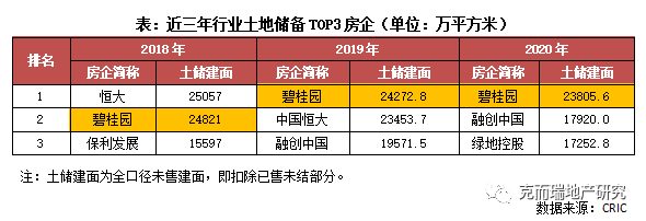 二是,領(lǐng)先優(yōu)勢(shì)在擴(kuò)大。2019年,碧桂園全口徑土儲(chǔ)建面達(dá)到2.43億平方米,排名躍至行業(yè)第一位,但彼時(shí)與第二位的中國(guó)恒大儲(chǔ)備規(guī)模相差并不大。但到2020年,2億平方米陣營(yíng)只剩碧桂園一家,與第二、三位拉開顯著差距。