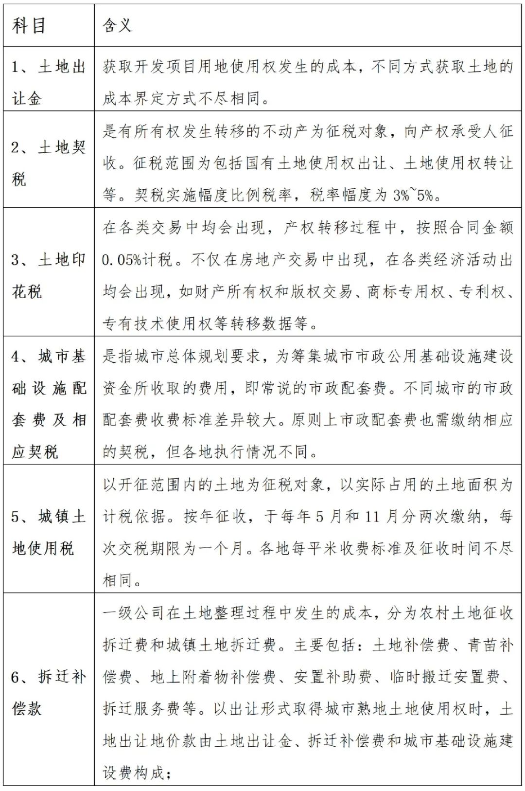 從廣義上來說,土地成本應包含以下六項,詳細見下表: