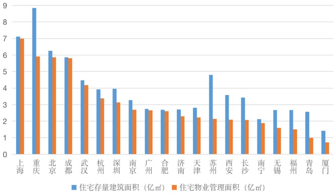 二線城市中,中西部城市成都和武漢市場規模也較為突出,住宅物業管理規模也已躋身全國前五位,住宅物業管理規模均超過5億平方米.