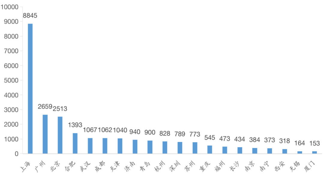 聚焦重點20城數據,上海在2021年全國物業管理服務招投標市場最為活躍,全年累計中標項目達8845個。廣州排在第二位,但中標項目數量不足上海的三分之一。