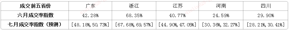 七月預測:成交量在2562至3002筆左右,成交率指數區間[17.83%,19.54%],月起拍折扣指數區間[74.58%,75.31%],變現折扣指數區間[77.89%,80.63%]。