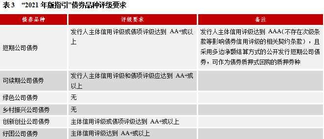 (三) “2021年版指引”債券品種評(píng)級(jí)要求