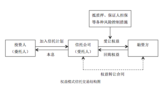 企業基于自身擁有的優質權益(基礎資產的權利無瑕疵并且現金流穩定可控)與信托公司合作,通常采用“權益轉讓附加回購”等方式,從而實現優質資源整合放大的信托融資模式
