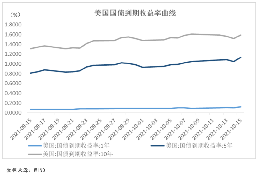 本周美聯儲鷹派立場對債券市場的影響仍在持續,同時周五公布的9月零售數據明顯好于預期,加強了市場對于美聯儲提前加息的預期,各期美債收益率隨即大幅上升。從總體來看,1年期、5年期和10年期美國國債平均收益率分別較上周上漲1.35個、8.95個和1.50個BP至0.11%、1.09%和1.57%。
