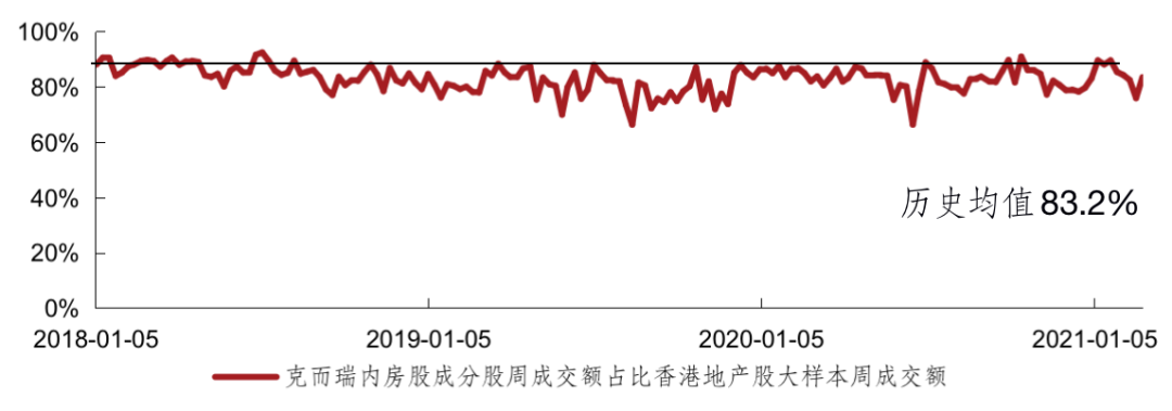 備注:相對(duì)PE=(克而瑞內(nèi)房股領(lǐng)先指數(shù)成分股整體PE/恒生指數(shù)成分股整體PE-1)*100%