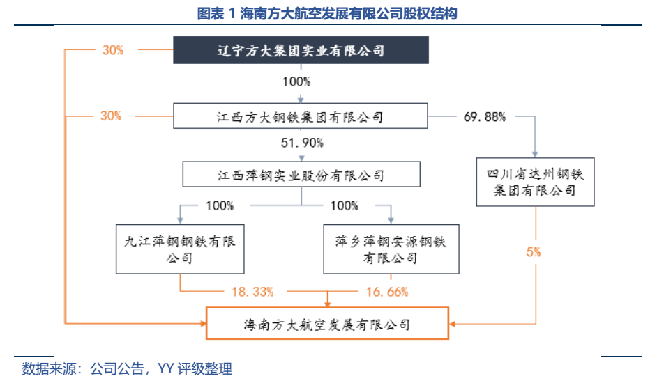 本次戰(zhàn)略投資較大概率以海南方大航空發(fā)展有限公司這家公司(以下簡(jiǎn)稱“海南方大”)為載體進(jìn)行。2021年6月,方大集團(tuán)聯(lián)合其子公司江西方大鋼鐵集團(tuán)有限公司(以下簡(jiǎn)稱“方鋼集團(tuán)”)、方鋼的三個(gè)子公司聯(lián)合成立了海南方大航空發(fā)展有限公司,注冊(cè)資本高達(dá)300億元。目前,方大集團(tuán)持股30%,方鋼集團(tuán)持股30%,方鋼集團(tuán)的三個(gè)子公司九江萍剛、萍鄉(xiāng)萍鋼、達(dá)州鋼鐵分別持股18.3%、16.7%、5%。意味著并購(gòu)資金方大集團(tuán)母公司僅需承擔(dān)30%,30%由方大鋼鐵集團(tuán)承擔(dān),剩余40%由方鋼集團(tuán)三家子公司承擔(dān)。所以整體方大集團(tuán)和方鋼集團(tuán)3:7。