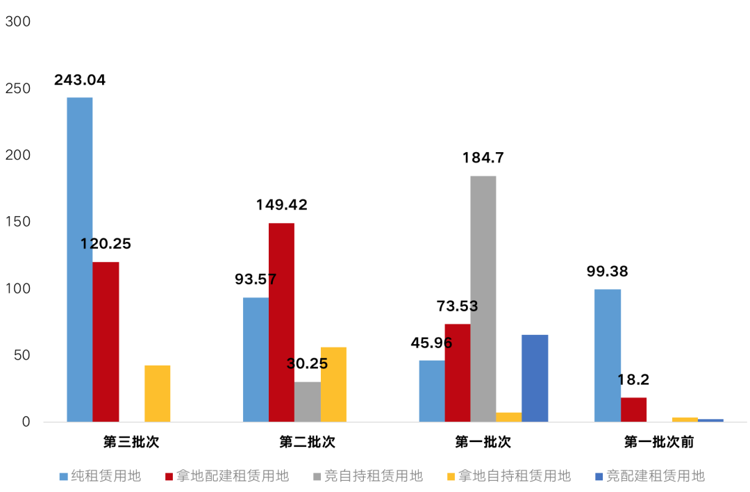 從重點22城集中拍地情況來看,租賃住房用地占集中供地比例一般不低于住宅用地的10%。據克而瑞租售統計,2021年22城集中供地中純租賃用地成交481萬方,競自持用地214萬方,配建租賃住房用地361萬方,競配建租賃用地67萬方。