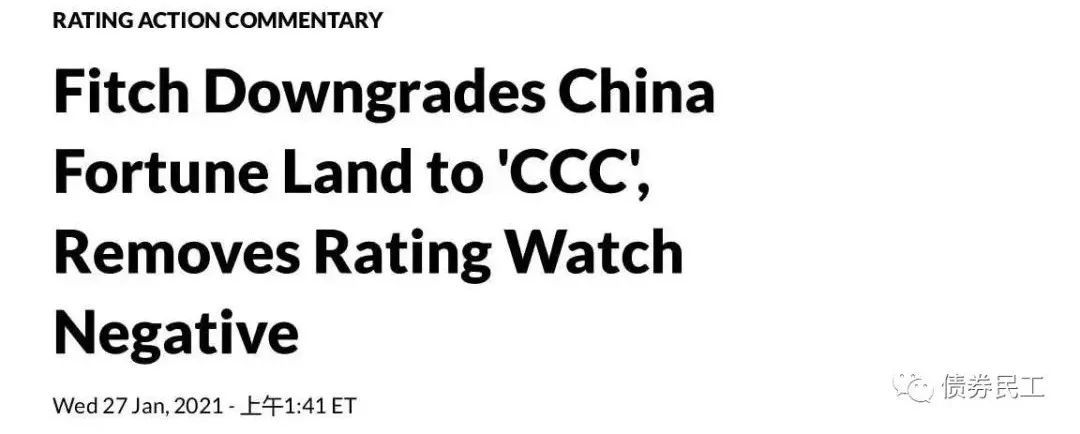 根據國際評級機構惠譽評級1月27日的評級公告,惠譽評級將華夏幸福的高級無抵押評級從B下調至CCC,同時將公司移出負面評級觀察名單。在惠譽評級下調之前,國外評級機穆迪公司已于2020年9月17日將華夏幸福的評級展望調整為負面。