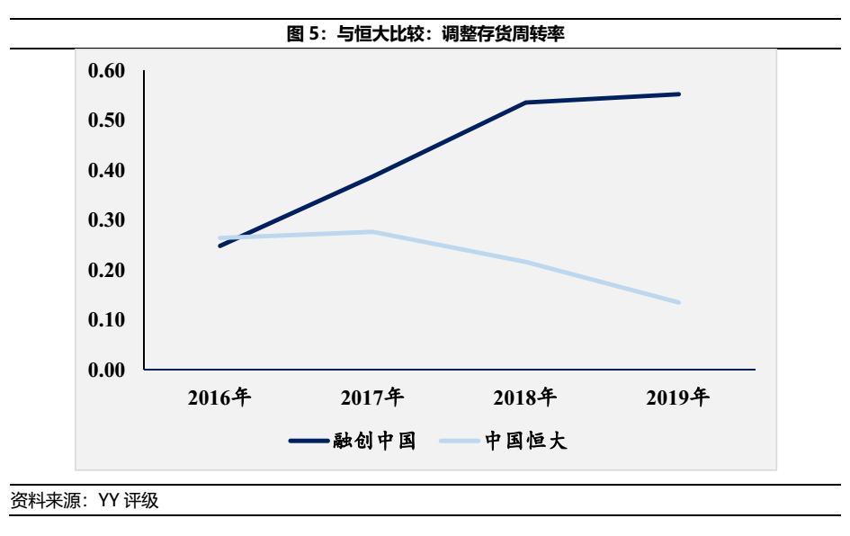 雖均為依賴大量非標舉債拿地的大型房企,融創(chuàng)與恒大最大的差異體現(xiàn)于周轉率的高低,兩間主體從而有了截然不同的結果。雖然礙于兩間上市主體提供的土地儲備信息較少,難以借由大盤多期分開的節(jié)點測算兩者運營策略的差異化分析,但從財務報表得出的周轉率高低仍見高下。