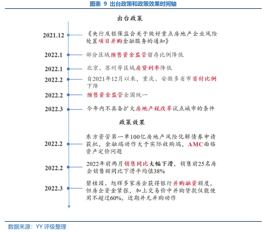 03 融資端,給予其他參與救助的金融機構(銀行、信托、AMC等)和資質較好的項目合作方的配套紓困融資,并對風險化解募資用途加強監督。融資端對行業內民企的再融資放開受制于“去杠桿”和金融機構風險偏好,難有實質性幫扶作用,大概率不能給房企直接帶來現金流,而出險企業的債務不會憑空消失,資產也多數需借外力盤活,故融資端更需要政策以更強力推進相關機構落實,從而看到流動性危機企業中的優質項目處置進展加速。